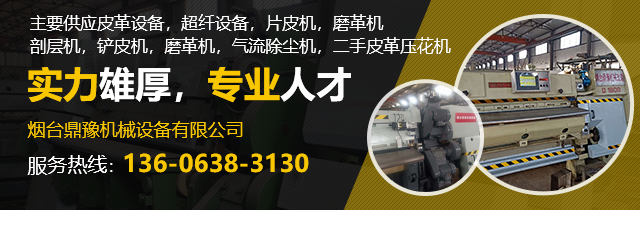 煙臺(tái)鼎豫機(jī)械設(shè)備有限公司位于山東省煙臺(tái)市芝罘區(qū)楚玉路238號(hào)泰和工業(yè)園,我公司主要經(jīng)營皮革機(jī)械設(shè)備,超纖設(shè)備及配件的生產(chǎn),銷售。我們有好的產(chǎn)品和專業(yè)的銷售和技術(shù)團(tuán)隊(duì),主要供應(yīng)皮革設(shè)備,超纖設(shè)備,片皮機(jī),磨革機(jī),剖層機(jī),鏟皮機(jī),磨革機(jī),氣流除塵機(jī),二手皮革壓花機(jī)。我們具有專業(yè)維修國內(nèi)外各種型號(hào)精密片皮機(jī)的技術(shù)和能力,承攬大中小維修機(jī)械的業(yè)務(wù)。定制各種型號(hào)帶刀、砂輪等。